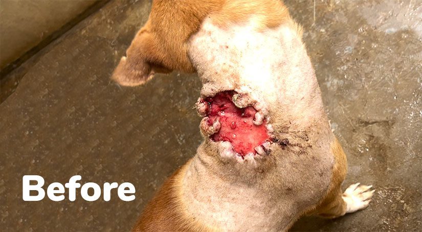 After being abandoned, I was attacked by other dogs on the street and suffered many painful wounds, including maggots in my neck. Luckily, someone contacted the LAW mobile clinic, and I was rescued.