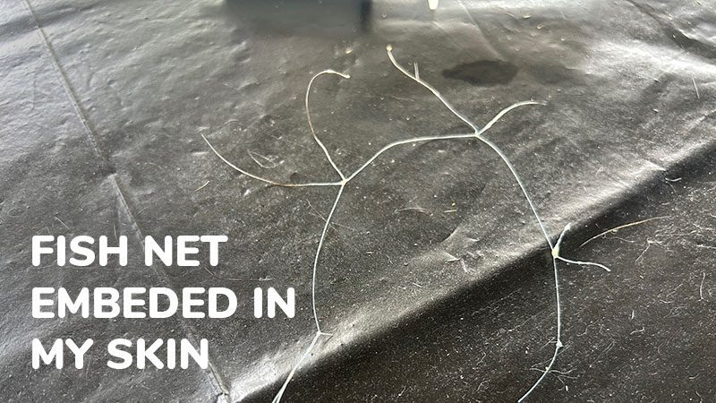 The kind vets got quite a shock as the some of net was imbedded in my chest and even my skin was trying to heal itself by growing over the net.